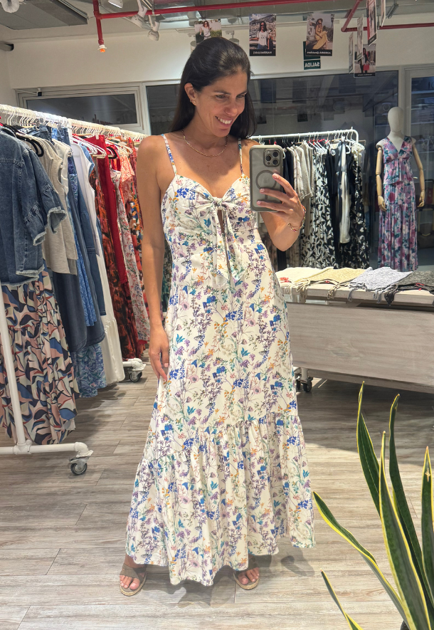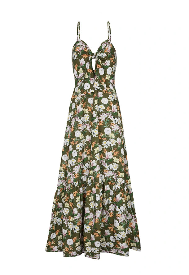Uno de nuestros best sellers ha regresado para nuestra colección high summer: un vestido con el fitting más favorecedor, ideal para lucir en eventos importantes. Este éxito de nuestra colección está diseñado con nuestro exclusivo print botánico. Además, cuenta con un elegante detalle de lazo en el frente, que añade un toque sensual.