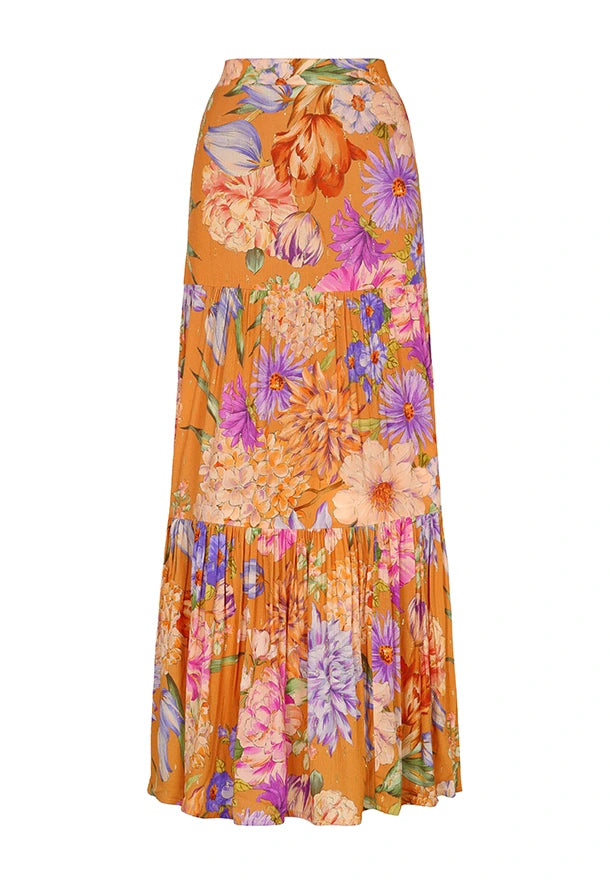 Nuestro best seller está de regreso: la falda Euforia en su versión primavera-verano. Con un estampado único y un toque bohemio, esta falda de challis ligero y fluido es ideal para destacar en días cálidos o noches especiales. Su cintura alta estiliza la figura, mientras los frunces en la parte inferior aportan volumen y movimiento.