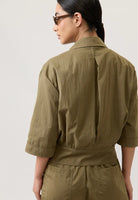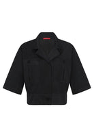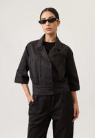 Una prenda versátil que combina la elegancia de un trench con la ligereza de un bolero. Su diseño corto y sofisticado aporta estructura al look, ideal para usar sobre vestidos, blusas o pantalones de tiro alto. Confeccionado en una mezcla de 59% rayón y 41% nylon, ofrece suavidad, frescura y resistencia, garantizando comodidad y estilo en cada ocasión. Perfecto para elevar un outfit casual o complementar un conjunto más formal con un aire moderno y refinado.