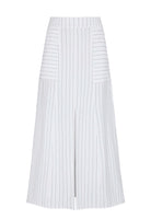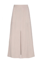 Una prenda sofisticada que combina frescura y movimiento. Confeccionada en un tejido ligero de 88% rayón, 9% nylon y 3% poliéster, su textura suave y caída natural la convierten en un básico versátil para la temporada. Su silueta midi estiliza la figura, mientras que las delicadas líneas verticales alargan visualmente el cuerpo. El detalle de abertura frontal aporta un toque femenino y moderno, perfecto para equilibrar comodidad y estilo. Ideal para llevar con el Chaleco Cannes en un conjunto coordinado o para combinar con piezas básicas que resalten su diseño elegante.