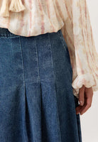 Nuestra Falda Recta Denim es una pieza versátil y atemporal que eleva cualquier look con su caída elegante y su diseño estructurado. Confeccionada en denim, de tacto cómodo pero con buena estructura, presenta una silueta recta y fluida con detalle de pretina ancha y pliegues delanteros que estilizan la figura.