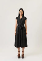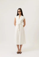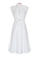 Un diseño elegante y fresco que equilibra estilo y comodidad. Confeccionado en una mezcla ligera de 88% rayón, 9% nylon y 3% poliéster, ofrece suavidad, fluidez y un calce natural que estiliza la silueta. Sus delicadas rayas verticales alargan visualmente la figura, mientras que el cinturón permite ajustar la cintura para un acabado femenino y favorecedor. Perfecto para llevar en ocasiones de día o de noche, es una pieza versátil que transmite sofisticación sin esfuerzo.
