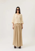 Un pantalón fluido y atemporal diseñado para brindar comodidad sin perder elegancia. Su silueta amplia estiliza y alarga la figura, mientras que la pretina estructurada define la cintura con delicadeza. Confeccionado en un tejido ligero que aporta frescura y movimiento, es la prenda ideal para llevar desde la oficina hasta una salida casual con un aire sofisticado. Perfecto para combinar con el Chaleco Calma o con blusas ligeras que resalten su caída natural.