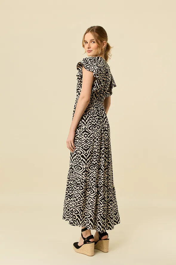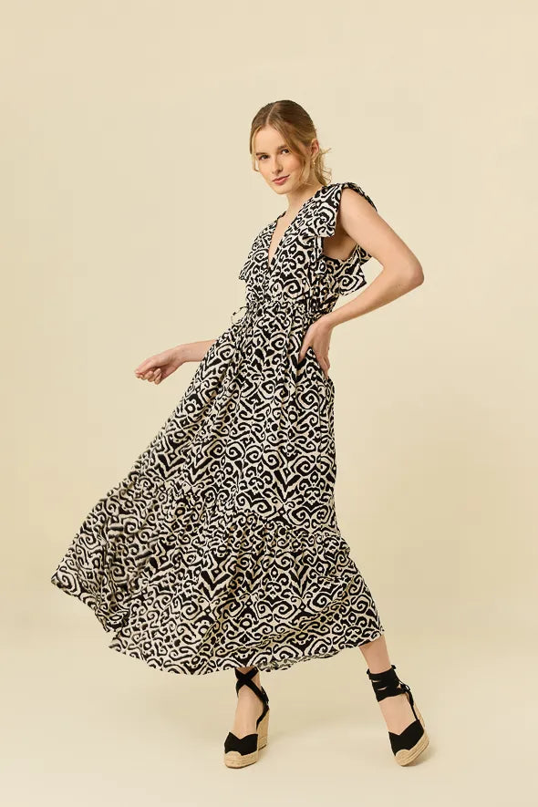 El Vestido Alegría Verde es una pieza ligera y femenina que celebra la frescura del verano con su estampado botánico en tonos verdes. Su silueta maxi fluida se acompaña de mangas con volantes, escote en “V” y una cintura ajustable que realza la figura con naturalidad. Con movimiento suave y un diseño versátil, es el vestido perfecto para días luminosos, escapadas al aire libre o looks relajados con un toque sofisticado.