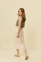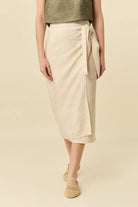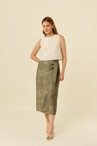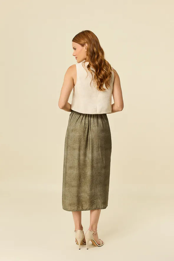 Su largo midi la convierte en una prenda versátil para el día o la noche —ideal para combinar con tops ligeros o camisas estructuradas.