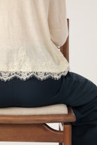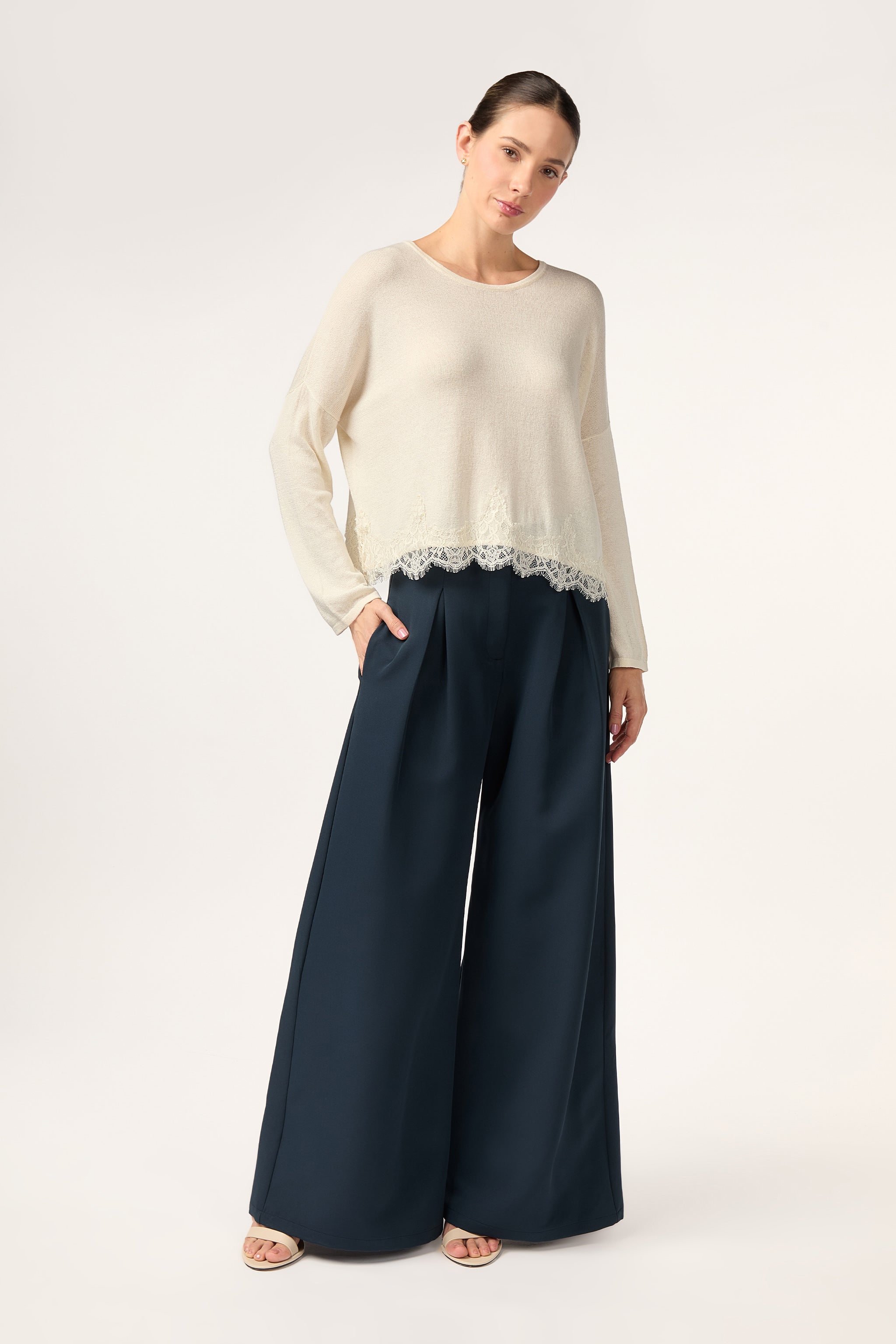 Nuestra Lacie Crop Tejida destaca por su silueta relaxed fit y cuerpo boxy que es uno de los favoritos porque funciona con distintos bottoms y vestidos. Esta pieza delicada aporta un estilo femenino y moderno con un detalle de encaje que la convierte en una prenda especial que sigue la tendencia pero permanecerá en el tiempo.