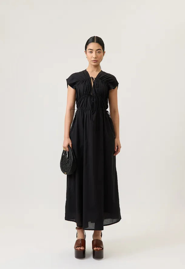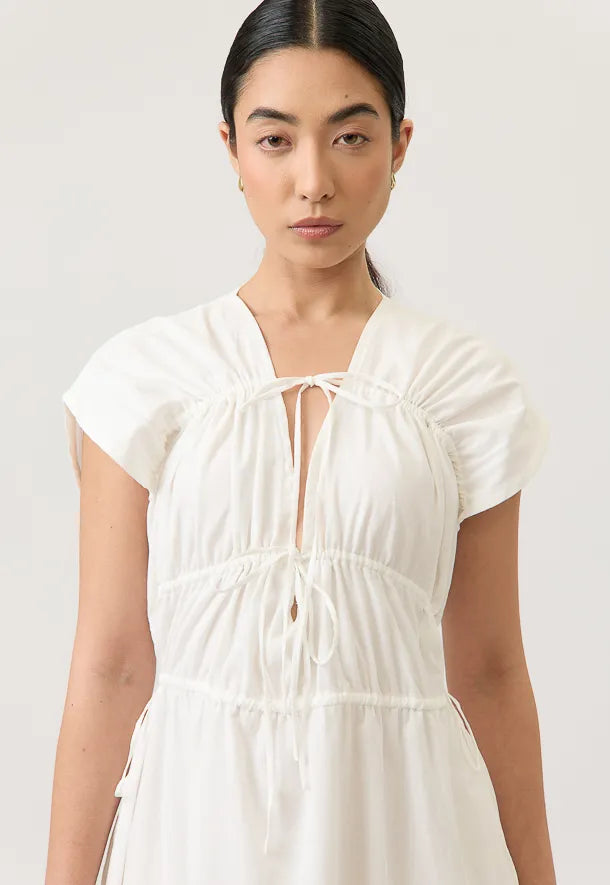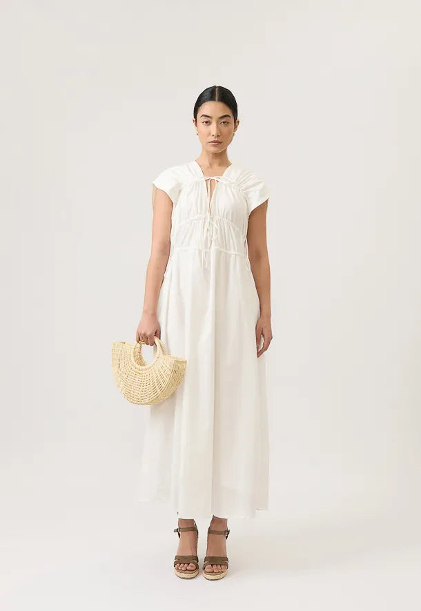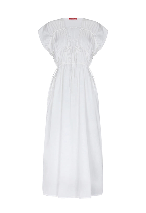 Un diseño fresco y atemporal que equilibra naturalidad y estilo. Confeccionado en 100% algodón, brinda una textura suave y ligera que permite libertad de movimiento y una sensación de frescura durante todo el día. Su silueta fluida se adapta con elegancia al cuerpo, ofreciendo un calce cómodo y relajado que realza la figura de forma sutil. Ideal para los días de sol, paseos al aire libre o encuentros casuales, es una pieza versátil que transmite sofisticación sin esfuerzo.