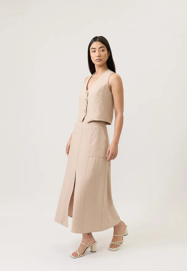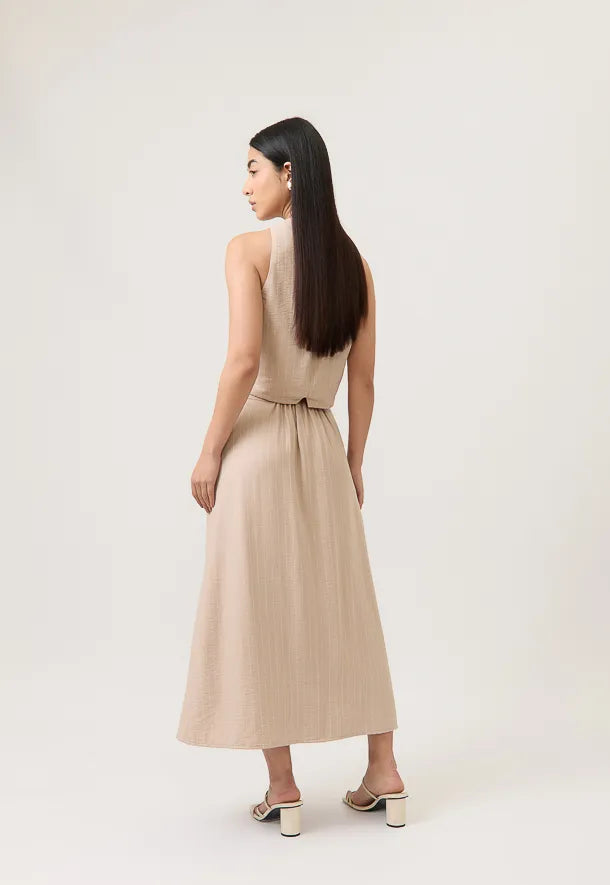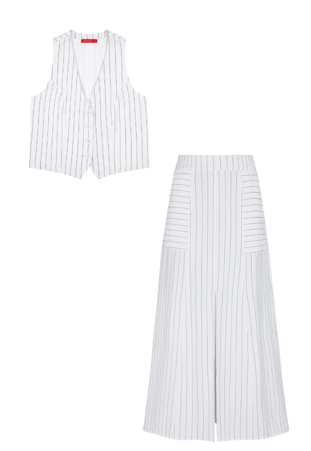 Un dúo pensado para resaltar. El Conjunto Cannes combina un chaleco estructurado con una falda de caída suave, creando un look sofisticado, moderno y versátil. Perfecto para elevar tus outfits de día o de noche con ese toque chic que define la esencia Ale Morey.