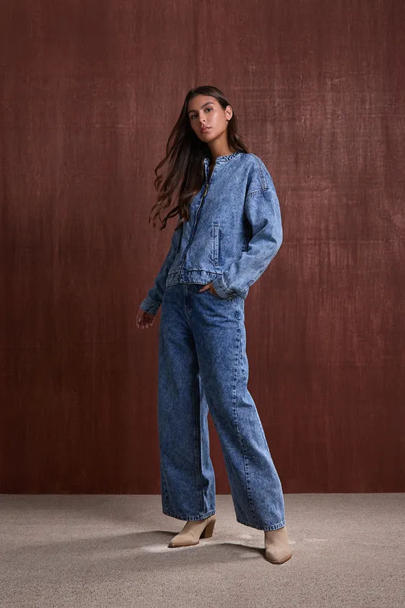 La Casaca Bomber - redefine la versatilidad con su diseño relajado en denim 100% algodón, combinando comodidad y un estilo effortless. Su acabado en tono azul y grafito aporta un toque urbano y sofisticado, ideal para complementar cualquier look.