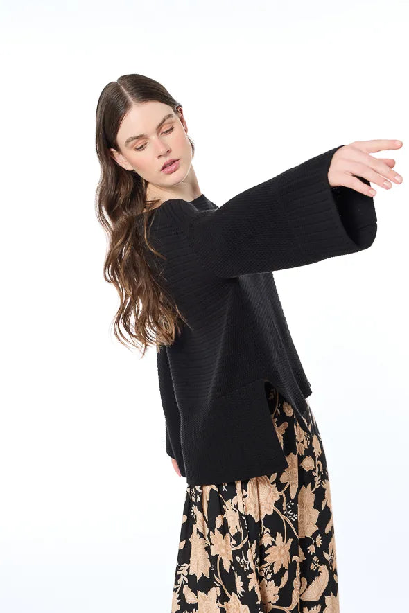 Ligero, versátil y lleno de movimiento. El Sweater Campana es una pieza infaltable en tu clóset de media estación. Su silueta amplia con mangas tipo campana y caída fluida crea un efecto elegante y relajado a la vez, ideal para looks casuales con un toque sofisticado.