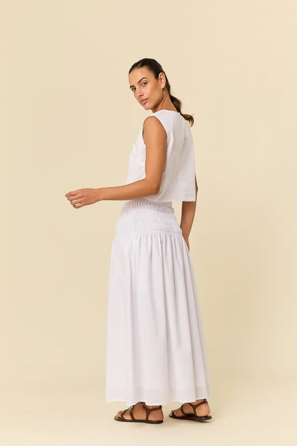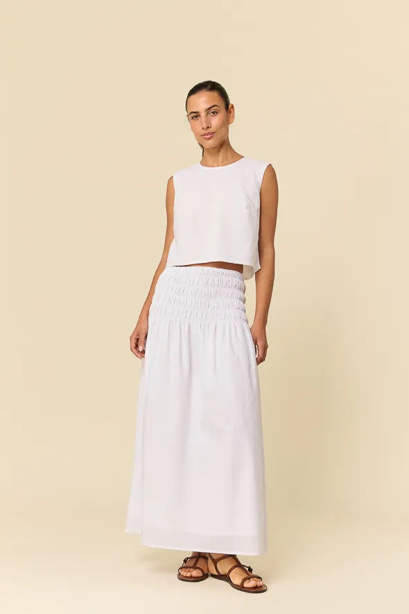 Su silueta recta y moderna lo convierte en un básico imprescindible para combinarlo con todo: desde denim relajado hasta piezas más sofisticadas. Fresco, versátil y atemporal —un top que acompaña tus looks de temporada con una esencia única y auténtica.